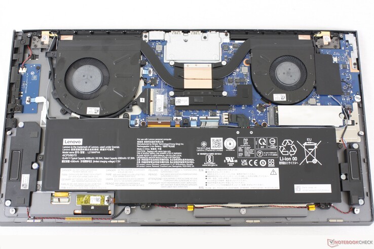Strömförbrukningen vid tomgång på skrivbordet är cirka 7 till 8 W, men den kan vara så hög som 13 W vid visning av innehåll som mestadels är vitt i färgen, till exempel de allra flesta webbsidor på grund av OLED-pekskärmen. Som jämförelse kan nämnas andra subnotebooks med traditionella IPS-paneler som t.ex.ThinkPad X1 Nano Gen 3 eller Dragonfly G4 nästan hälften så mycket ström även med maximal ljusstyrka.