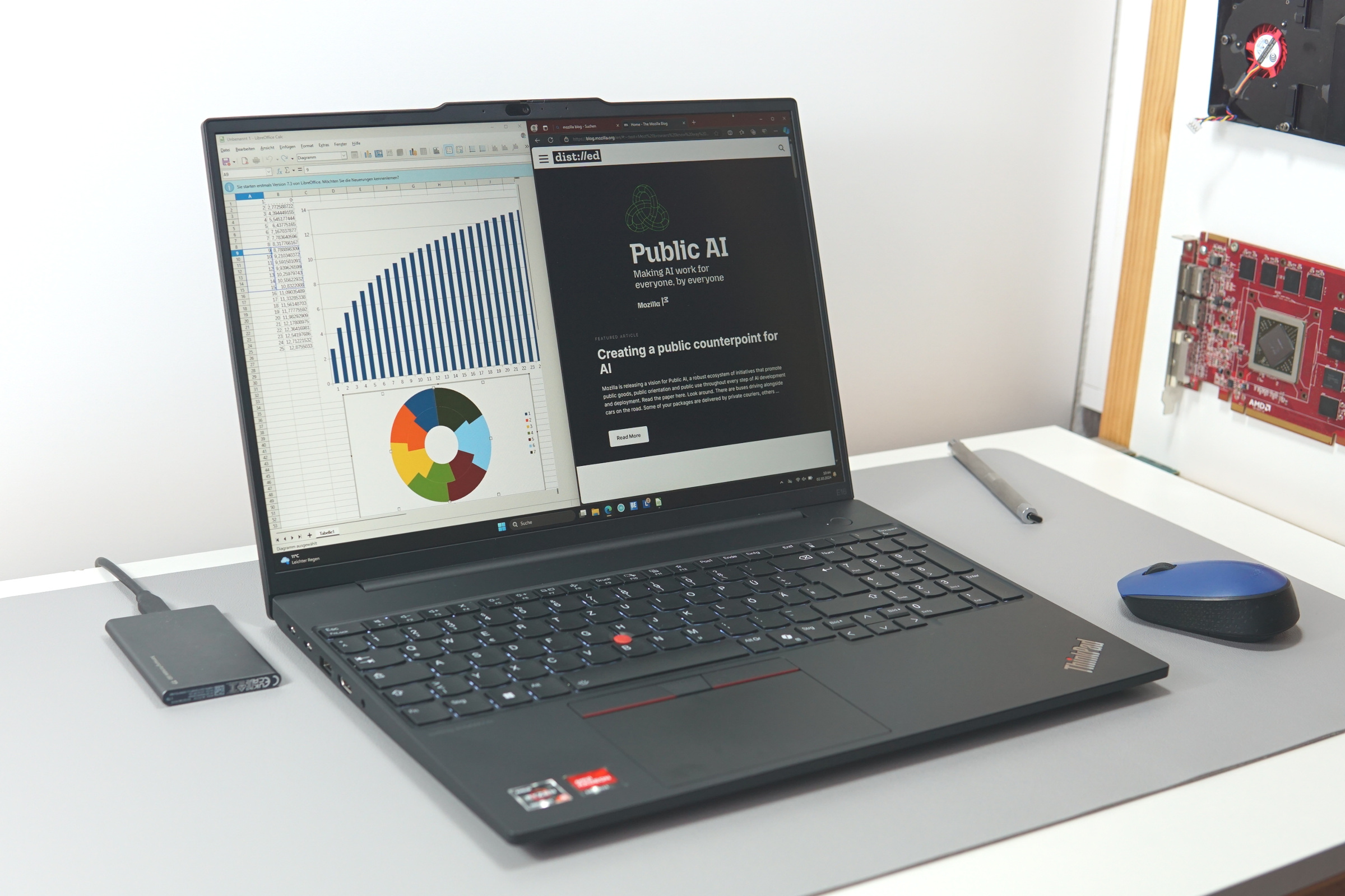 Medan AMD Ryzen-processorerna kunde glänsa med sin effektivitet jämfört med Intel Raptor Lake-processorerna, är detta inte längre fallet med chipen i Meteor Lake-serien. Ett genomsnitt på 7 och, i bästa fall, 4 watt är starka siffror för ThinkPad E16, men till exempel Lenovo ThinkPad T14s med Intel Core Ultra 5 125U är ytterligare en tredjedel mer ekonomisk.
