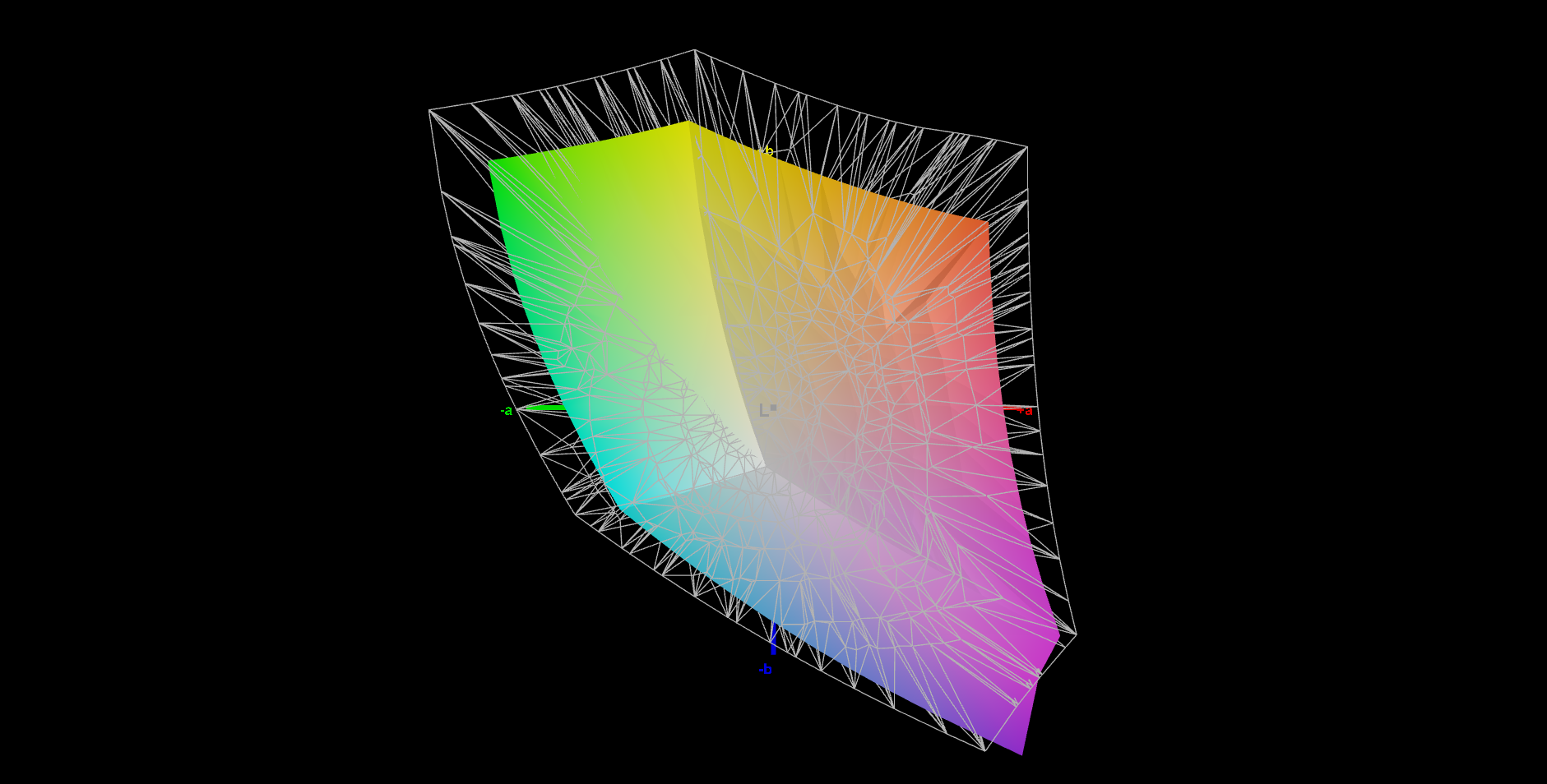 Panelens färgomfångstäckning är tillräcklig för enkel fotoredigering, eftersom sRGB-färgomfånget i princip är helt täckt. Den bristande täckningen av DCI P3 och AdobeRGB visar att detta inte är en avancerad panel.