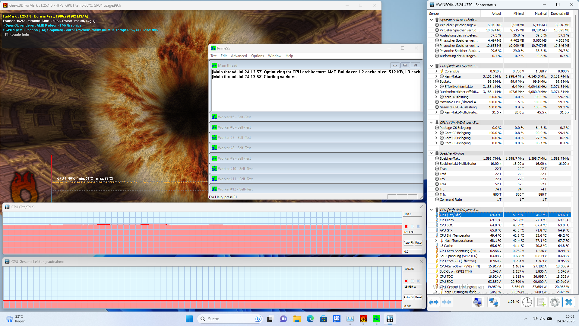 Vid maxbelastning förbrukar ThinkPad L14 Gen 4 AMD 61,3 W, vilket inte är någon utmaning för 65 W-laddaren.