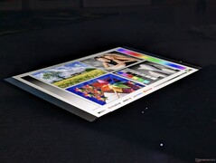 Subjektivt sett verkar den matta tandem OLED-skärmen på vår testenhet kornigare än ett traditionellt glansigt alternativ, särskilt när den visar en helvit bild. Den utmärker sig dock fortfarande vid HDR-uppspelning med sina mycket höga ljusstyrkenivåer, särskilt för en OLED-panel. Våra oberoende mätningar med en X-Rite kolorimeter visar en maximal ljusstyrka på 566 nits i SDR-läge och 1430 nits i HDR-läge, vilket är nära de annonserade värdena på 600 nits respektive 1500 nits. Om pekskärmen och HDR-funktionerna är oviktiga kan dock 2400p-alternativet vara mer värdefullt för sitt tätare pixelantal.