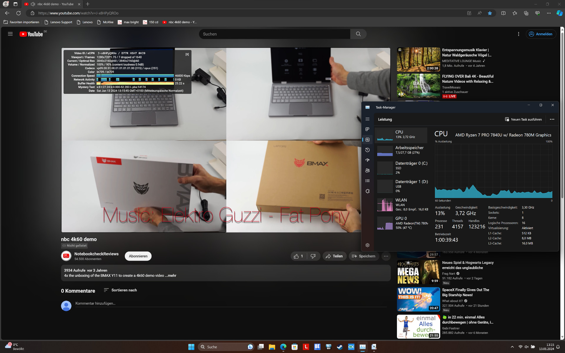 AMD Ryzen 7 Pro 7840U:s höga effektivitet dämpas något av den bärbara datorns OLED-skärm. De goda drifttiderna beror till stor del på batteriets stora kapacitet på 84 Wh och inte på att den är sparsam vid låg belastning.