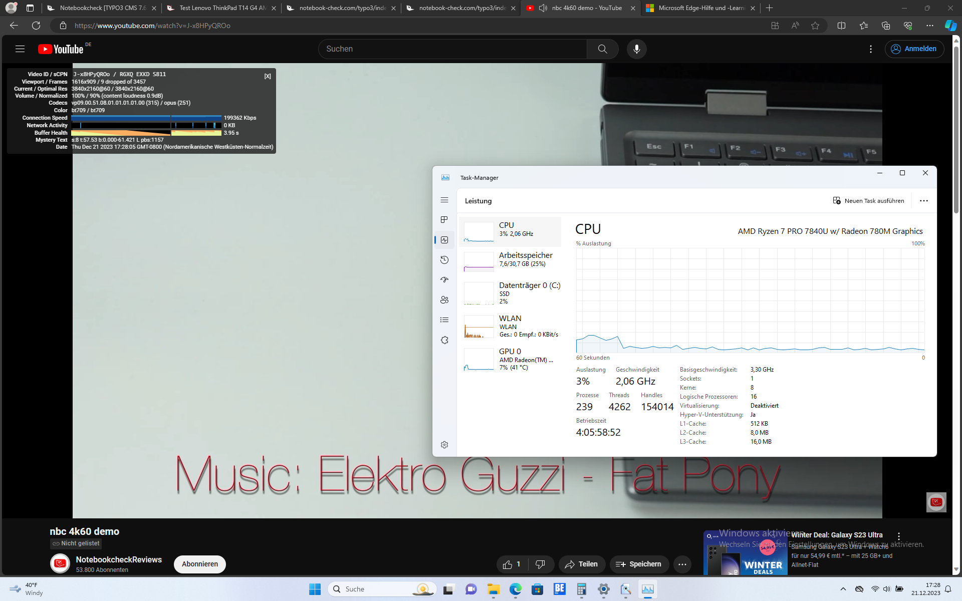Bortsett från det gillar vi mycket med den här bärbara datorn. Den har många portar, med inkluderingen av RJ45-Ethernet som en definierande funktion. WWAN är uppgraderingsbart för maximal flexibilitet och ThinkPad har många säkerhetsfunktioner. Att arbeta med ThinkPad-ingångsenheterna är mycket roligt, och Lenovo sätter in en användbar Low Power-panel. AMD Ryzen 7 Pro 7840U levererar en bra prestanda och tömmer inte batteriet snabbt. Fläktljud och temperaturer är inget speciellt, men också långt ifrån dåligt. Med det användarutbytbara tangentbordet har ThinkPad T14 Gen 4 en speciell funktion som sällan finns på de flesta moderna bärbara datorer.