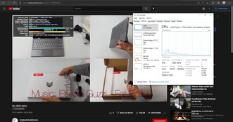 Till en början förbrukar processorn upp till 22 W i vårt Prime95-stresttest, och till skillnad från de Intel-utrustade T14:orna lyckades vår AMD-utrustade recensionsenhet upprätthålla nästan dubbla klockfrekvensen (med dubbelt så många kärnor) med 8x 2,3-2,6 GHz och kärntemperaturer på cirka 68 °C. Under kombinerad belastning körde GPU:n på 900 MHz och throttlade inte vid något tillfälle i vårt test. Temperaturerna visade sig ligga på mycket goda 67 °C.