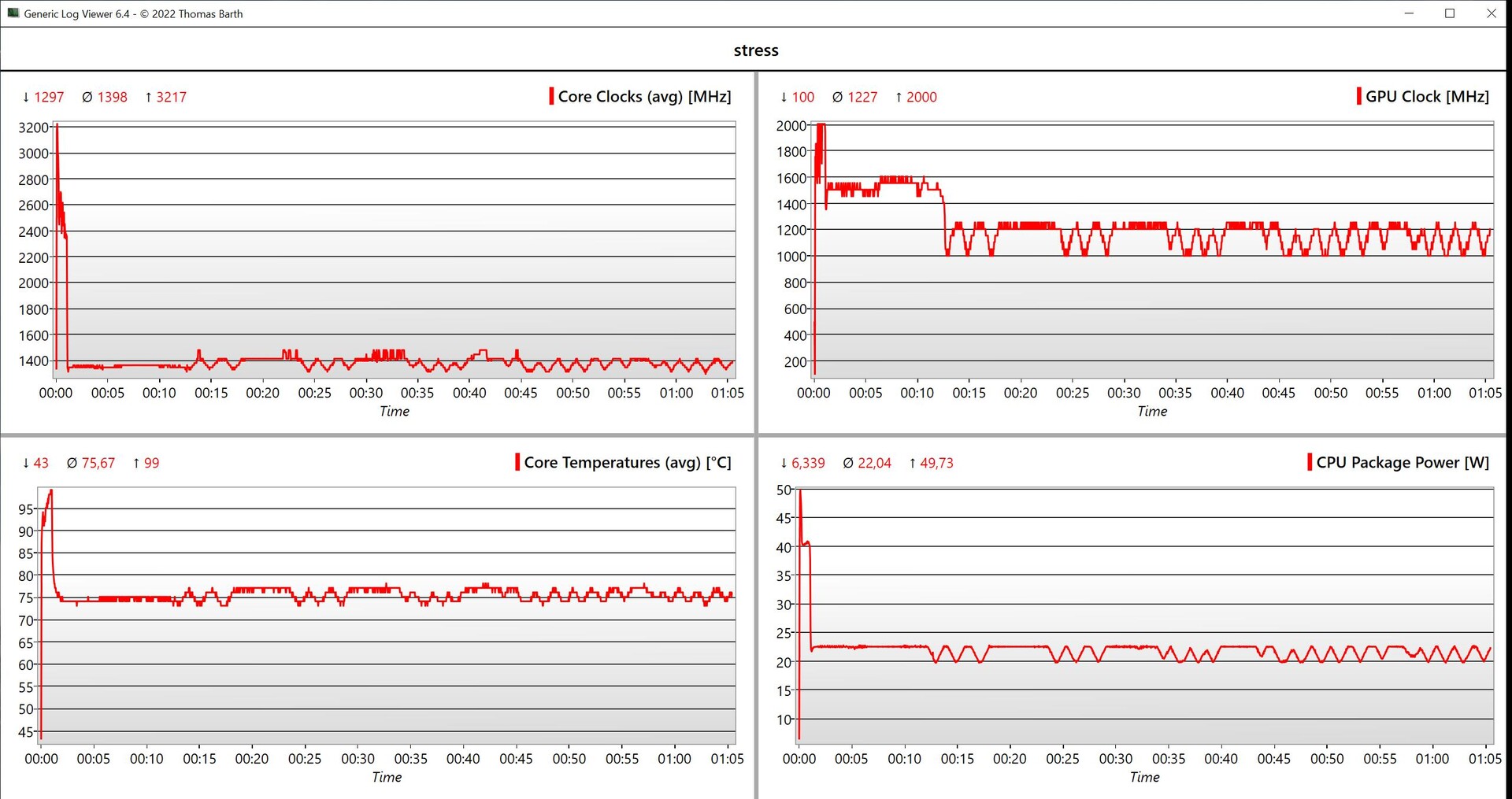 Förbrukningsmätningarna för vår testenhet bjuder inte på några överraskningar, även om förbrukningen i viloläge naturligtvis kan variera beroende på vilken bakgrund som visas på OLED-panelerna. Därför bör du använda dig av den mörka Windows-designen och den mörkaste möjliga bakgrunden för att hålla förbrukningen så låg som möjligt. Med Lenovos standardbakgrund uppmätte vi maximalt strax över 10 watt i viloläge, vilket är rimligt med tanke på skärmens höga upplösning. Under belastning nådde den maximala förbrukningen kortvarigt 64 watt för att sedan stabiliseras på cirka 42 watt efter en minut. Den medföljande 65-watts strömförsörjningen är därför tillräckligt stor.