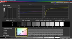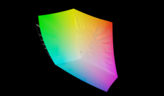 En styrka hos OLED-skärmen är den mycket goda färgområdestäckningen. Lenovo lovar 100 % DCI-P3, vilket faktiskt visar sig vara 99,7 %. Panelen kan fullt ut återge det lilla sRGB-färgutrymmet, och även AdobeRGB saknar inte mycket med sina 96,5 %.