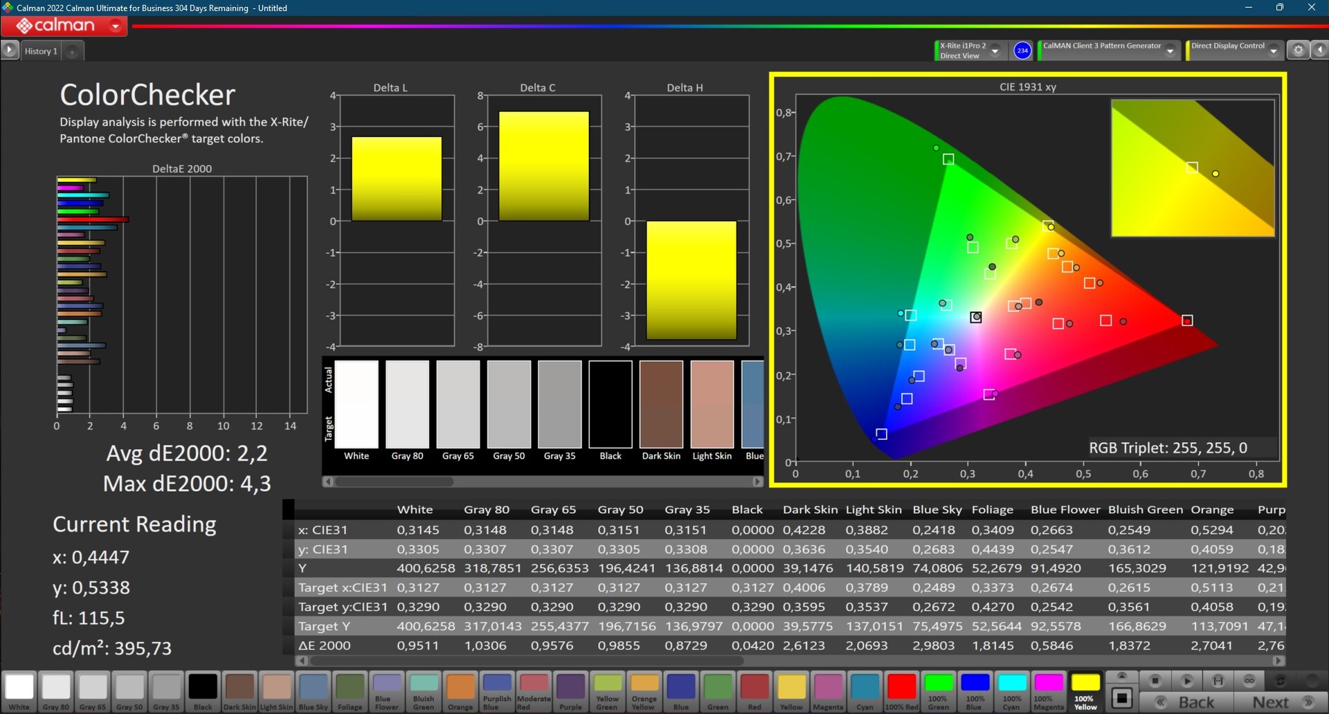 | Colorchecker dE 2000 calibrated * | 2.6 | 1.8 31% | 0.9 65% | 1.9 27% | 0.63 76% | 0.41 84% |