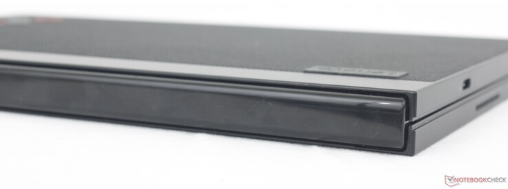 Det finns tre USB-C-portar på Lenovo jämfört med endast två på Zenbook 17 Fold. I gengäld saknar Lenovo dock ett 3,5 mm ljuduttag, vilket kan irritera vissa användare. Vi uppskattar dock att det finns en USB-C-port på varje sida av surfplattan för att tillgodose de olika lägena och betraktningsvinklarna i den vikbara designen.