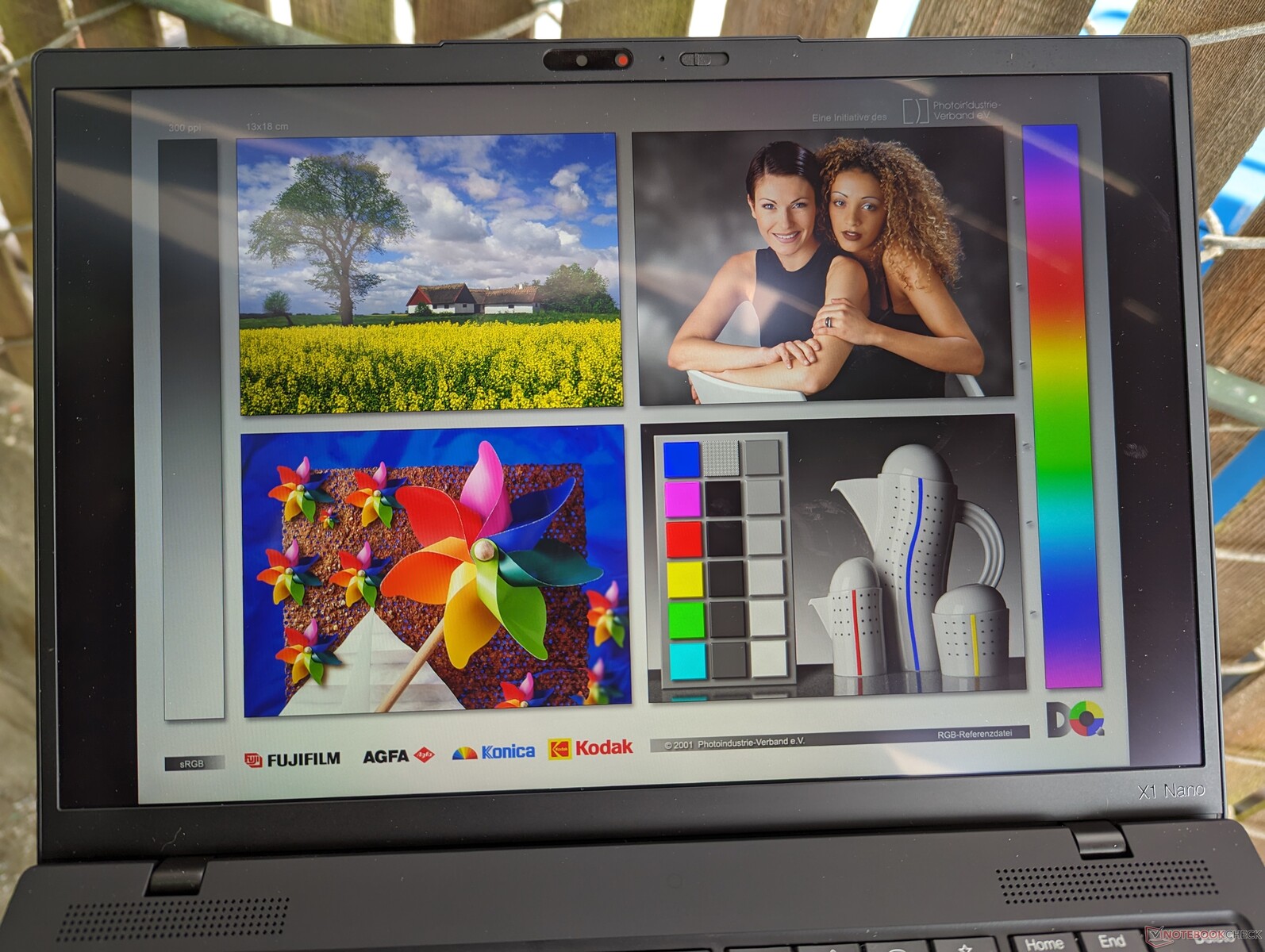 Skärmen är bättre kalibrerad direkt från start för förbättrad färgåtergivning jämfört med förra årets modell. Genomsnittliga deltaE-värden för gråskala och färg är bara 1,8 respektive 1,79, jämfört med 5,7 och 4,85 på X1 Nano Gen 2. Detta innebär att en slutanvändarkalibrering inte är lika nödvändig den här gången.