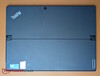 Trots det tre år långa uppehållet har nästan ingenting förändrats på utsidan. Den mörkgrå till svarta ovansidan på X12 är tillverkad av robust, lätt uppruggat magnesium, medan skärmen är täckt av glas från kant till kant. Endast den löstagbara tangentbordsenheten är tillverkad av plast, men precis som surfplattan är den mycket robust. Ingen av delarna spricker eller kan vridas särskilt kraftigt. Det finns ett stativ på baksidan av surfplattan, eftersom den nedre halvan kan vikas ut för att bilda ett stativ. Enbart surfplattan väger knappt 750 g, tillsammans med tangentbordsenheten 1.100 g (med pekpenna).