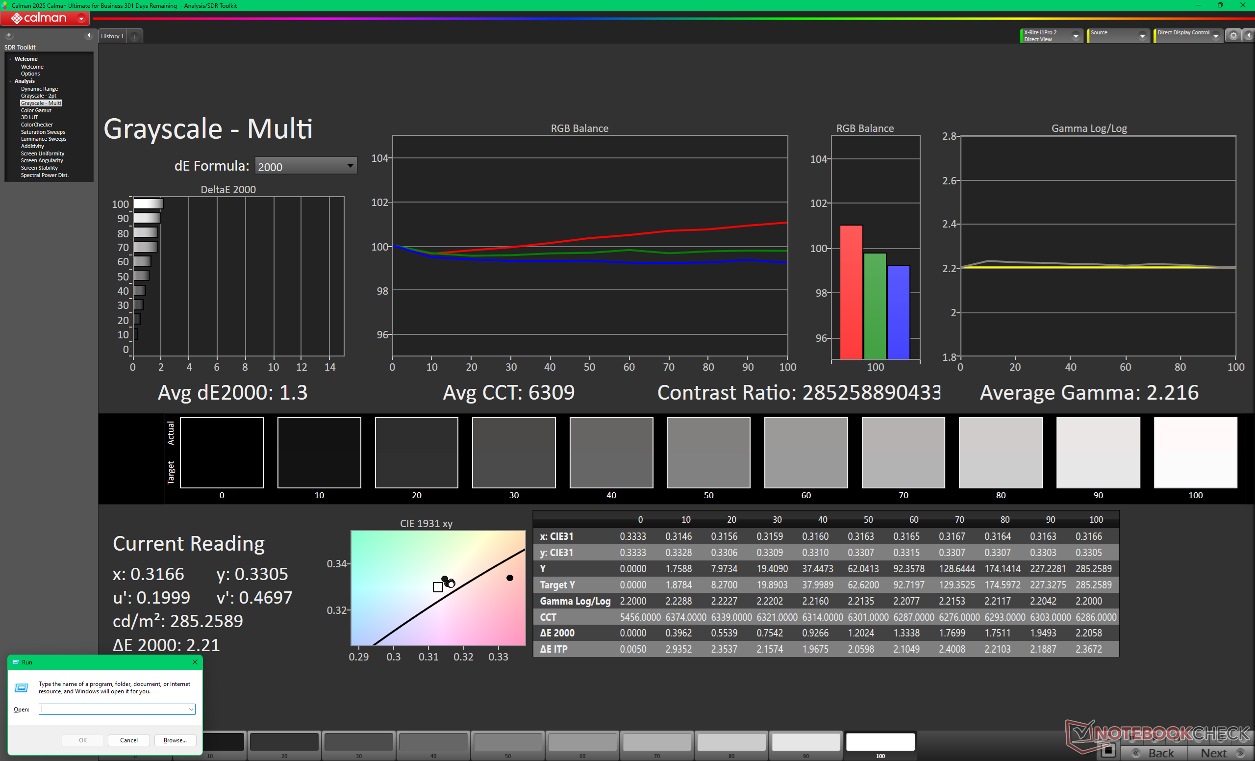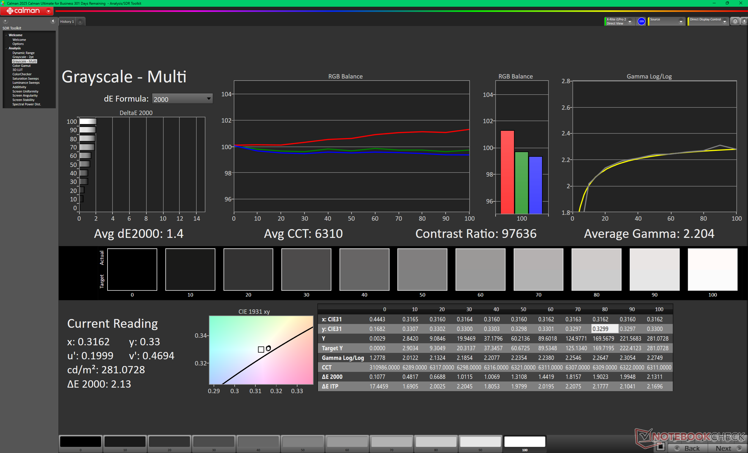 ΔE Greyscale Calman: 1.3 | ∀{0.09-98 Ø5}