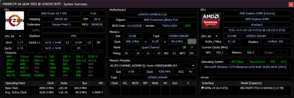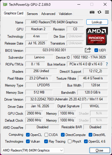 | Lenovo Yoga 7 2-in-1 16AGP11 AMD Ryzen AI 7 445 ⎘ AMD Radeon 840M ⎘ 24 GB Minne | Listpris: 1250 USD | 1.8 kg | 15.85 mm | 16.00" 1920x1200 142 PPI OLED | |