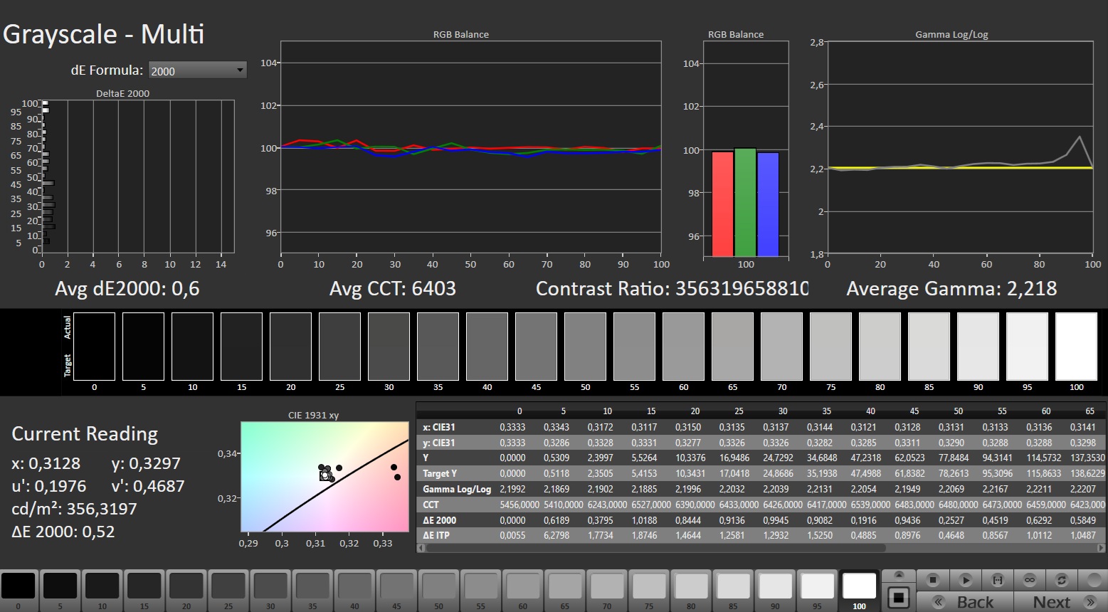ΔE Greyscale Calman: 1.5 | ∀{0.09-98 Ø5}