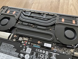 Naturligtvis finns det massor av positiva aspekter. Vi har redan nämnt de solida prestandavärdena tillsammans med det bra tangentbordet, numpad och utmärkta högtalare. Om man bortser från den knarrande baspanelen är höljet mycket bra och byggkvaliteten mycket stabil. Slutligen erbjuder 16-tumsmodellen också en andra SSD-kortplats.