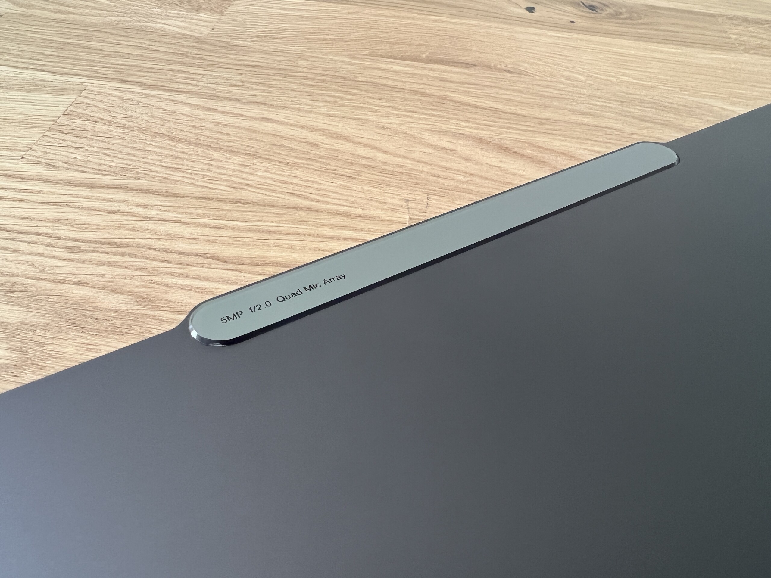 Den något tjockare kamerapuckeln rymmer en 5 MP-kamera som ger bra bildkvalitet, både för bilder och videor. Därmed behövs ingen extern webbkamera, särskilt inte för videokonferenser. En IR-sensor är också installerad, vilket möjliggör ansiktsigenkänning via Windows Hello. Kameran kan avaktiveras via ett litet skjutreglage på höger sida av höljet (e-shutter).