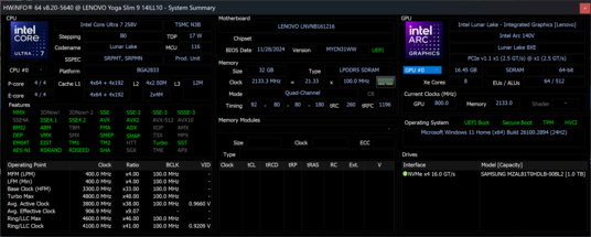 | Lenovo Yoga Slim 9 14ILL10 Arc 140V, Core Ultra 7 258V, Samsung PM9C1a MZAL81T0HDLB | Lenovo Yoga Pro 7 14ASP G9 Radeon 880M, Ryzen AI 9 365, Micron 2550 1TB MTFDKCD1T0TGE | Asus Vivobook S 14 OLED S5406SA Arc 130V, Core Ultra 5 226V, Micron 2500 MTFDKBA512QGN | HP OmniBook Ultra 14 Radeon 890M, Ryzen AI 9 HX 375, SK hynix PC801 HFS002TEJ9X101N | Dell XPS 14 2024 OLED GeForce RTX 4050 Laptop GPU, Ultra 7 155H, Samsung PM9A1 MZVL21T0HCLR | Samsung Galaxy Book4 Pro 14 Arc 8-Core, Ultra 7 155H, Samsung PM9B1 512GB MZVL4512HBLU | |