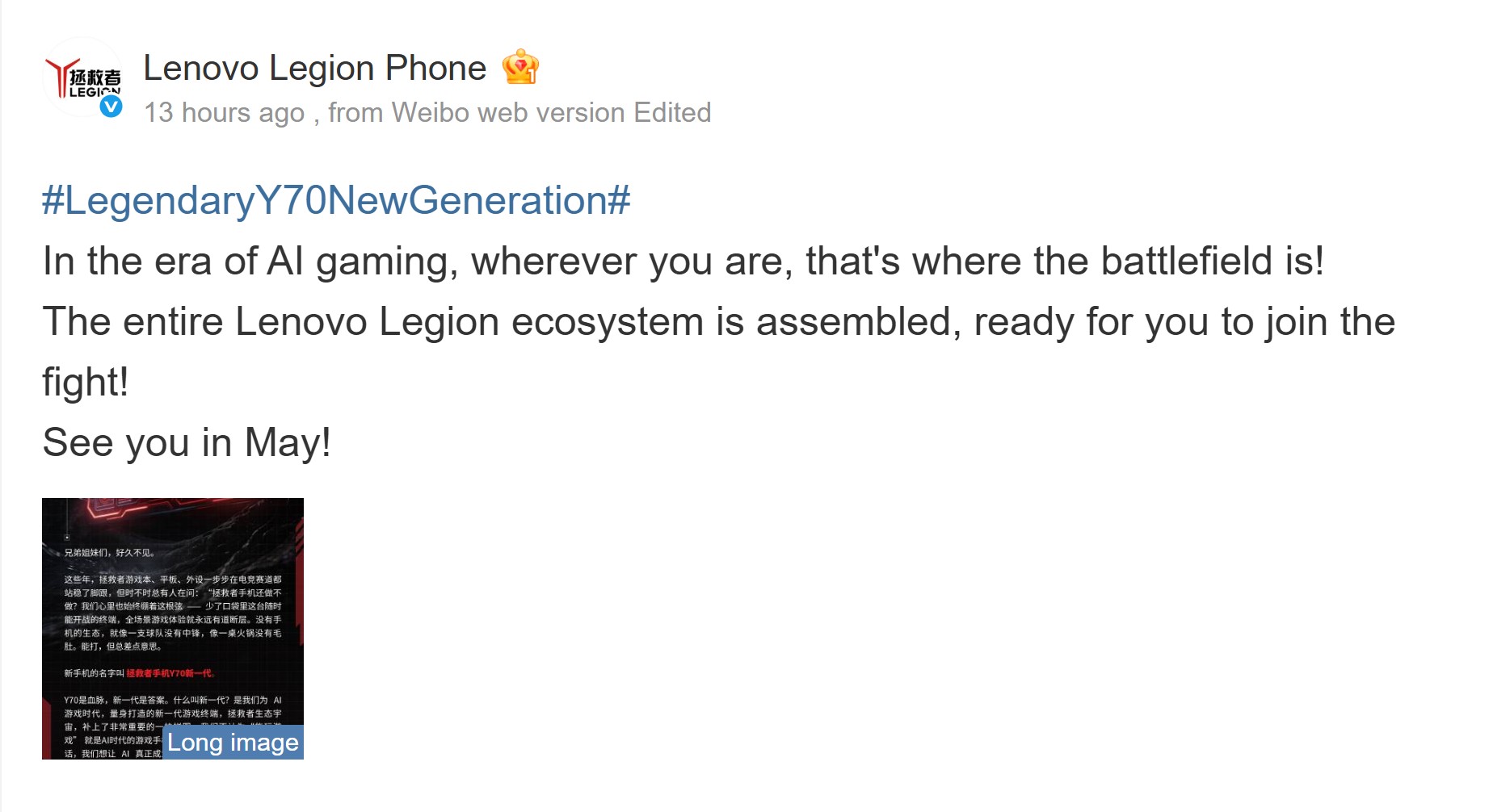 Med ett inte så oväntat tillkännagivande har företaget bekräftat att det snart kommer att tillkännage en ny Legion speltelefon. Varumärket delade inte mycket, men det har retat att en lansering i maj 2026 ligger på korten.