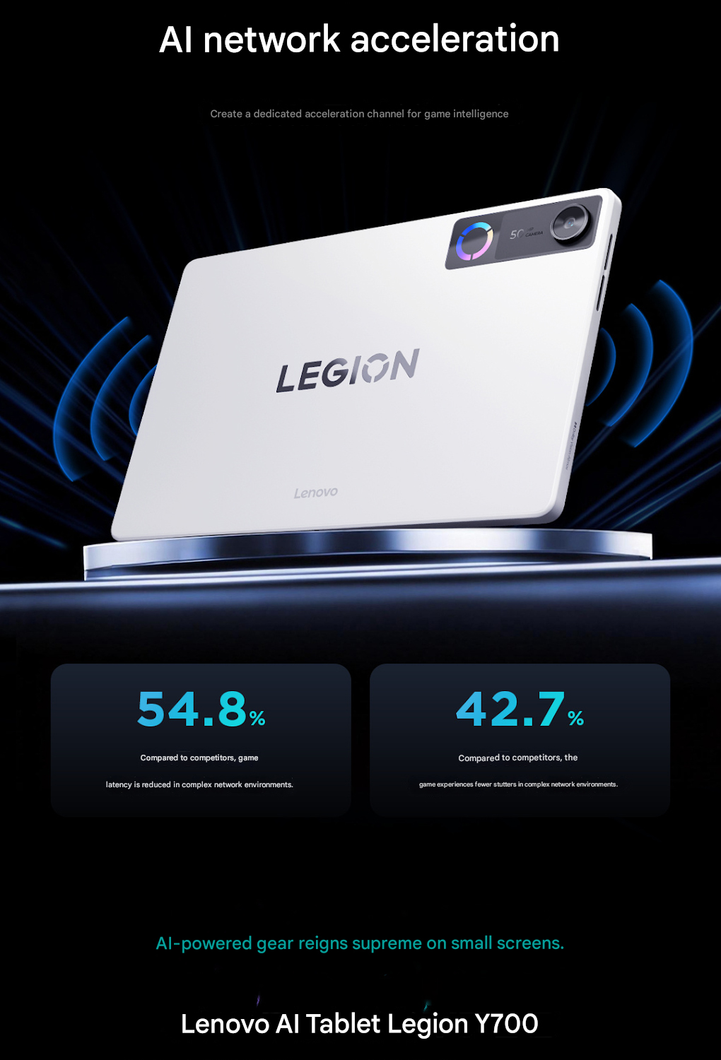 I den nya teasernsäger Lenovo att den kommande surfplattan kan erbjuda en mer responsiv online-spelupplevelse än konkurrerande surfplattor. Varumärket hävdar att det kan finnas upp till 54,8% skillnad när det gäller latens i utmanande nätverksmiljöer. Denna teknik minskar också till synes spelstammar under sådana förhållanden.