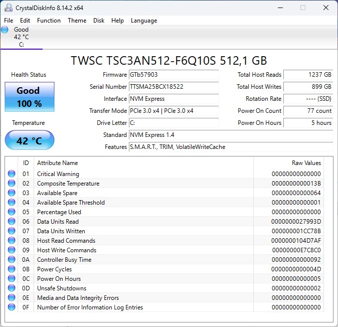 | Chuwi CoreBook Air R5 6600H, Radeon 660M, TWSC TSC3AN512-F6Q10S, IPS, 1920x1200, 14" | HP Omnibook 5 14 SD X Plus X1P-42-100, Adreno X1-45 1.7 TFLOPS, Samsung PM9C1 MZVL81T0HELB-00BTW, OLED, 1920x1200, 14" | Lenovo IdeaPad Slim 5-15ARP G10 R7 7735HS, Radeon 680M, Western Digital PC SN5000S SDEPMSJ-512G, IPS, 1920x1200, 15.3" | Ninkear S14, 16+1TB R5 7535HS, Radeon 660M, Faspeed P8-1TB-LB1, , 2240x1400, 14" | Asus ExpertBook B1 B1403CVA i5-13420H, UHD Graphics Xe G4 48EUs, Western Digital PC SN5000S SDEQNSJ-512G-1002, IPS, 1920x1080, 14" | Chuwi CoreBook X R5 7430U, Vega 7, AirDisk APF 10-512G, IPS, 2160x1440, 14" | Genomsnitt AMD Radeon 660M | Genomsnitt av klass Subnotebook | |