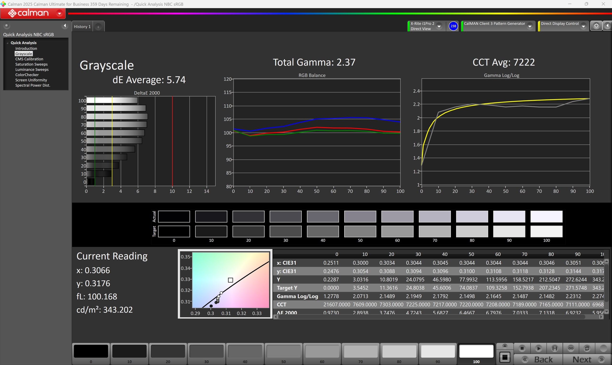 ΔE Greyscale Calman: 5.74 | ∀{0.09-98 Ø5}
