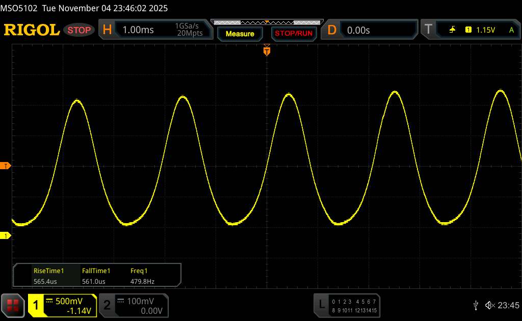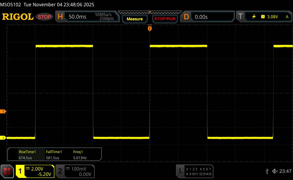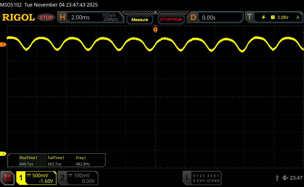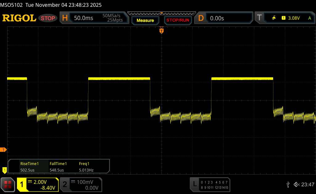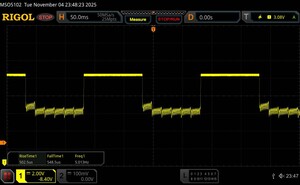 Sony använder PWM-modulering för att kontrollera luminansen. Vi mätte en frekvens på 480 Hz med Rigols programvara. Ingen information om DC- eller PWM-dimning tillhandahålls.