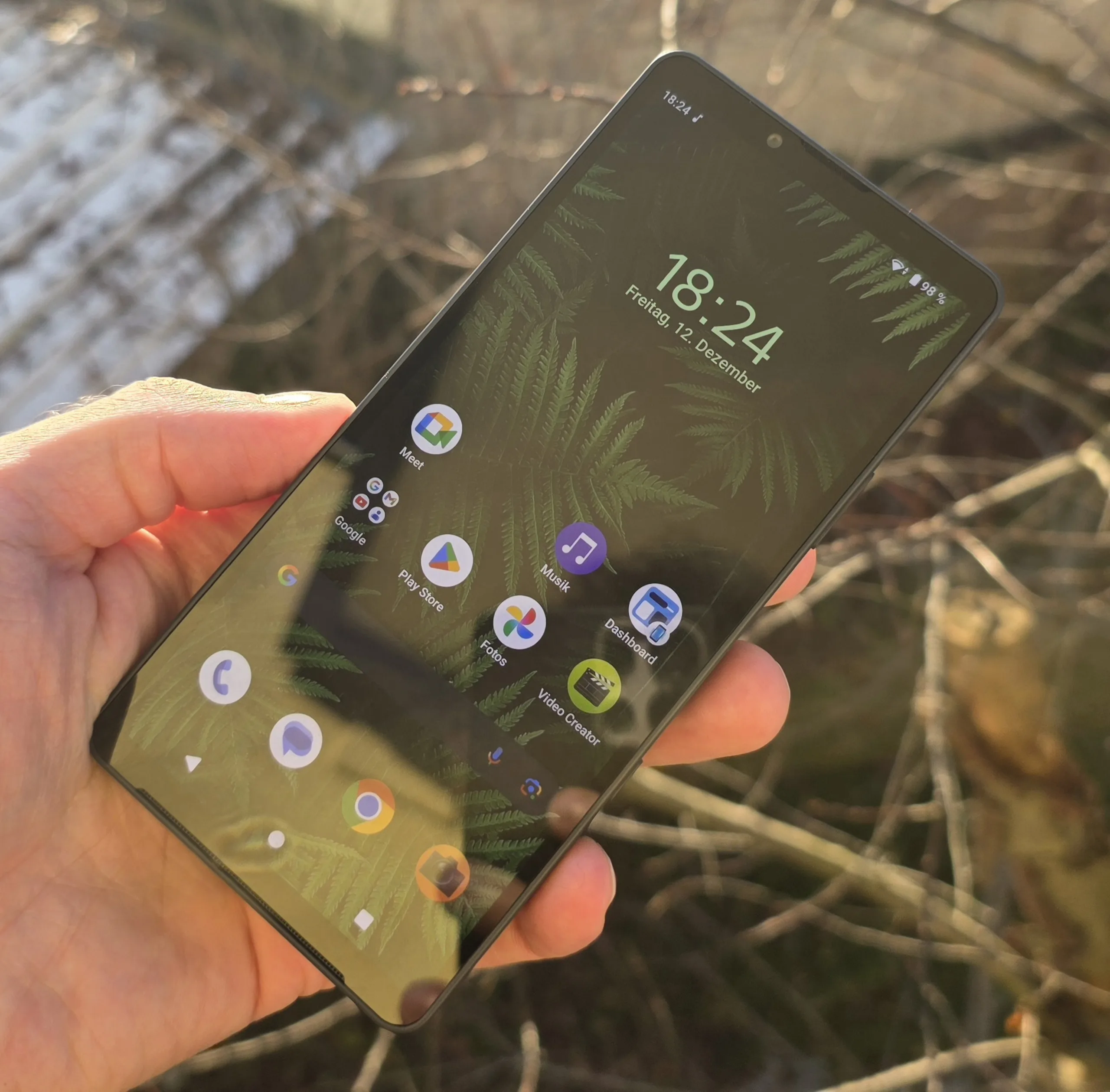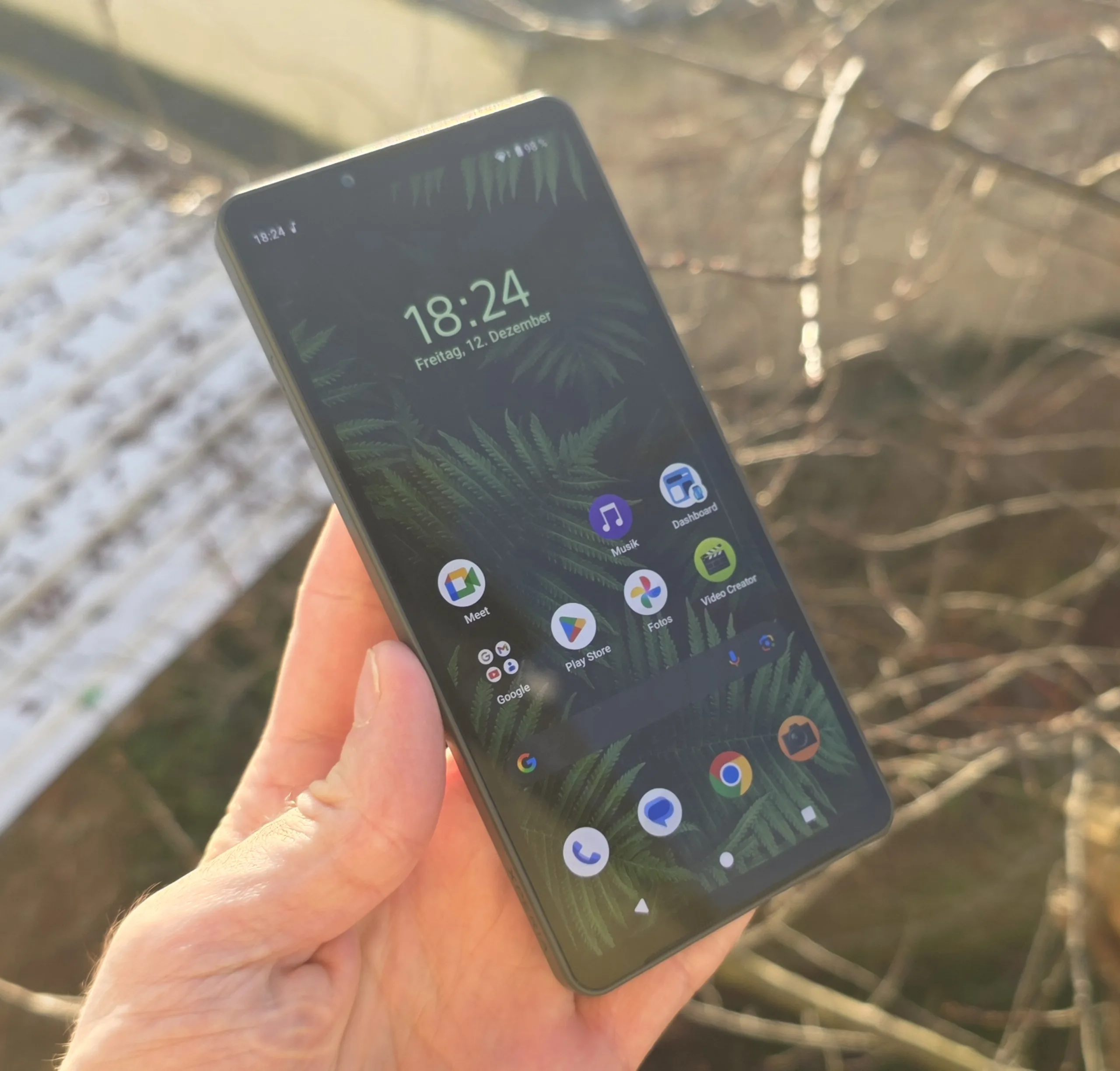 Sony är sig själv trogen och fortsätter att utrusta sin mellanklassmobil med ett 3,5 mm hörlursuttag och en microSD-kortplats. När det gäller RAM och UFS minne är Xperia 10 XII dock också något "old school" med endast 8 GB och 128 GB. Den senare fortsätter också med USB 2.0-porten, som inte bara är långsam utan inte heller stöder trådbunden bildutmatning. Vi uppmätte bara 27 MB/s i vårt test av kopieringshastigheten med en M2.SSD-hårddisk (Samsung SSD 7T). Anslutna databärare kan inte bara formateras med FAT32, utan även med exFAT. NTFS-filsystemet kan dock inte användas.