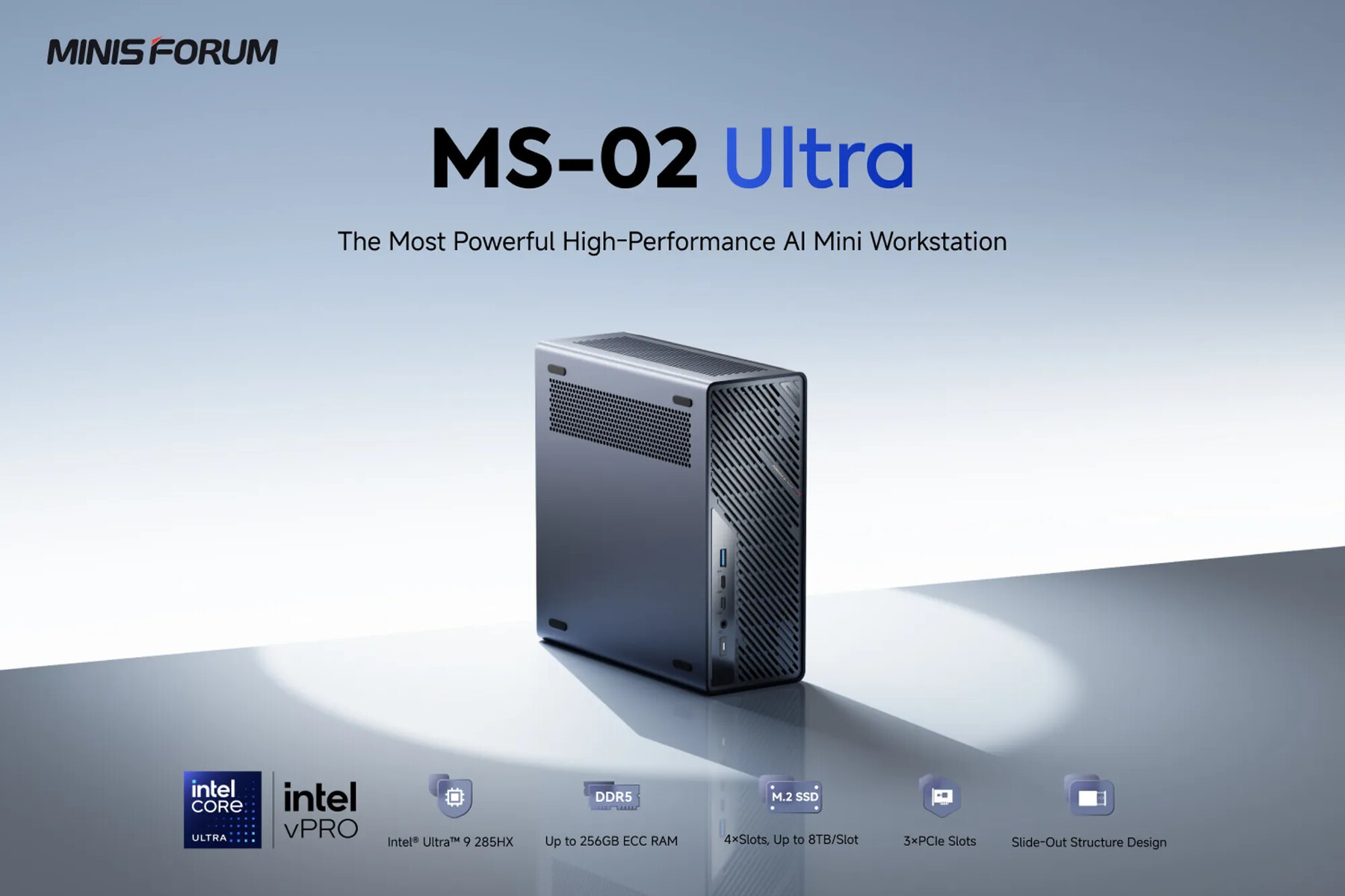 Medan Core Ultra 9 285HX innehåller en relativt svag iGPUkompenserar MS-02 Ultra för detta med PCIe-platser för att lägga till ett grafikkort och USB4 V2-portar för att ansluta eGPU:er. Dessutom kan MS-02 Ultra rymma upp till 32 TB lagringsutrymme via fyra M.2 2280 SSD-enheter, samt 256 GB RAM-minne och ett 350 W Flex PSU i ett 4,8 liters chassi som mäter 221,5 x 225 x 97 mm.
