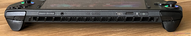 MSI har installerat en USB-C-port på enhetens ovansida som också stöder Thunderbolt 4. Vi skulle gärna ha sett en andra USB-anslutning för att snabbt kunna ansluta externa SSD-enheter eller USB-minnen, till exempel. Detta är särskilt viktigt när enheten är ansluten till elnätet eller drivs tillsammans med en extern bildskärm. Vi utförde en del av vårt test med gamern ansluten till en extern bildskärm och det fungerade utmärkt så länge skärmen stöder strömförsörjning via USB-C. Den har ingen webbkamera, men strömknappen kan också användas som fingeravtrycksläsare.