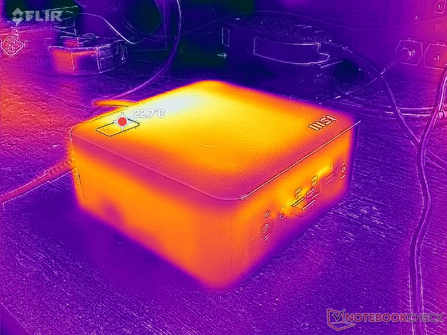 Den totala förbrukningen är märkbart lägre än för en AMD H-serie minidator som GMK NucBox K12 även om vår integrerade Arc 140V är ungefär jämförbar med den konkurrerande integrerade Radeon 780M när du spelar. Prestanda per watt gynnar i allmänhet MSI Cubi, om än på bekostnad av rå processorprestanda jämfört med många AMD Zen 4- eller Zen 5-alternativ.