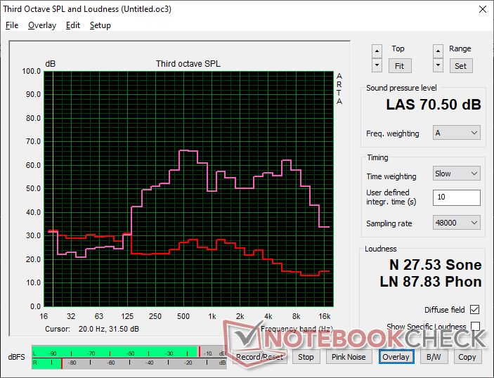 (±) | linjäriteten för det totala ljudet är genomsnittlig (29.5% skillnad mot median)