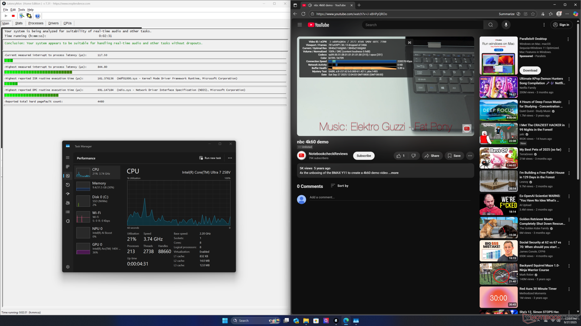 Core Core Ultra 7 258V är nästan 50 procent snabbare än den äldre Core 7 150U i förra årets Cubi NUC 1M när det gäller rå prestanda för flera trådar. Den har också en integrerad NPU, vilket NUC 1M inte hade, för stöd för Co-Pilot+.