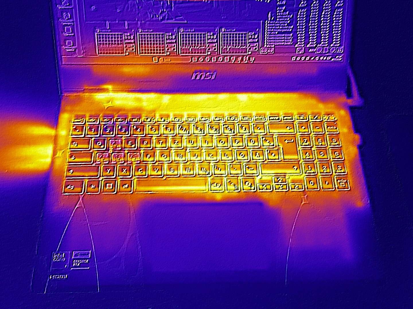 Temperaturerna är också okej. Den övre och nedre delen värms upp till maximalt 46 respektive 45 °C (~114,8 respektive 113 °F) under hög belastning. Vissa svagheter är uppenbara i viloläge, där Cyborg 15 tenderar att vara varmare än sina konkurrenter.