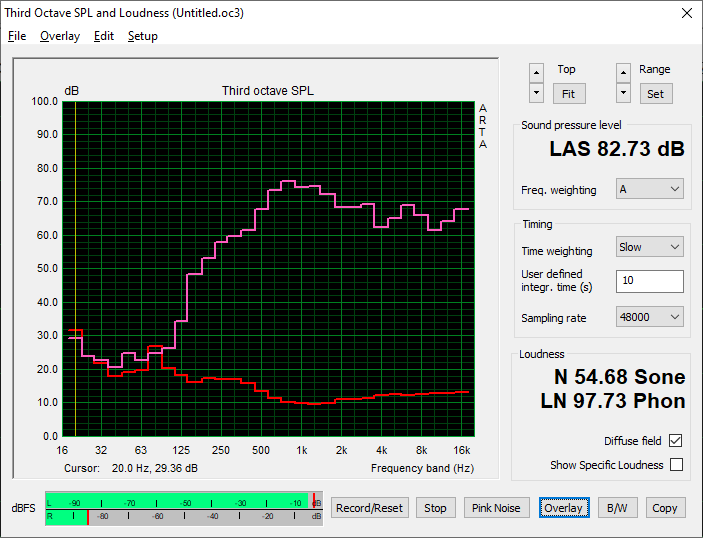 (±) | linjäriteten för det totala ljudet är genomsnittlig (16.2% skillnad mot median)