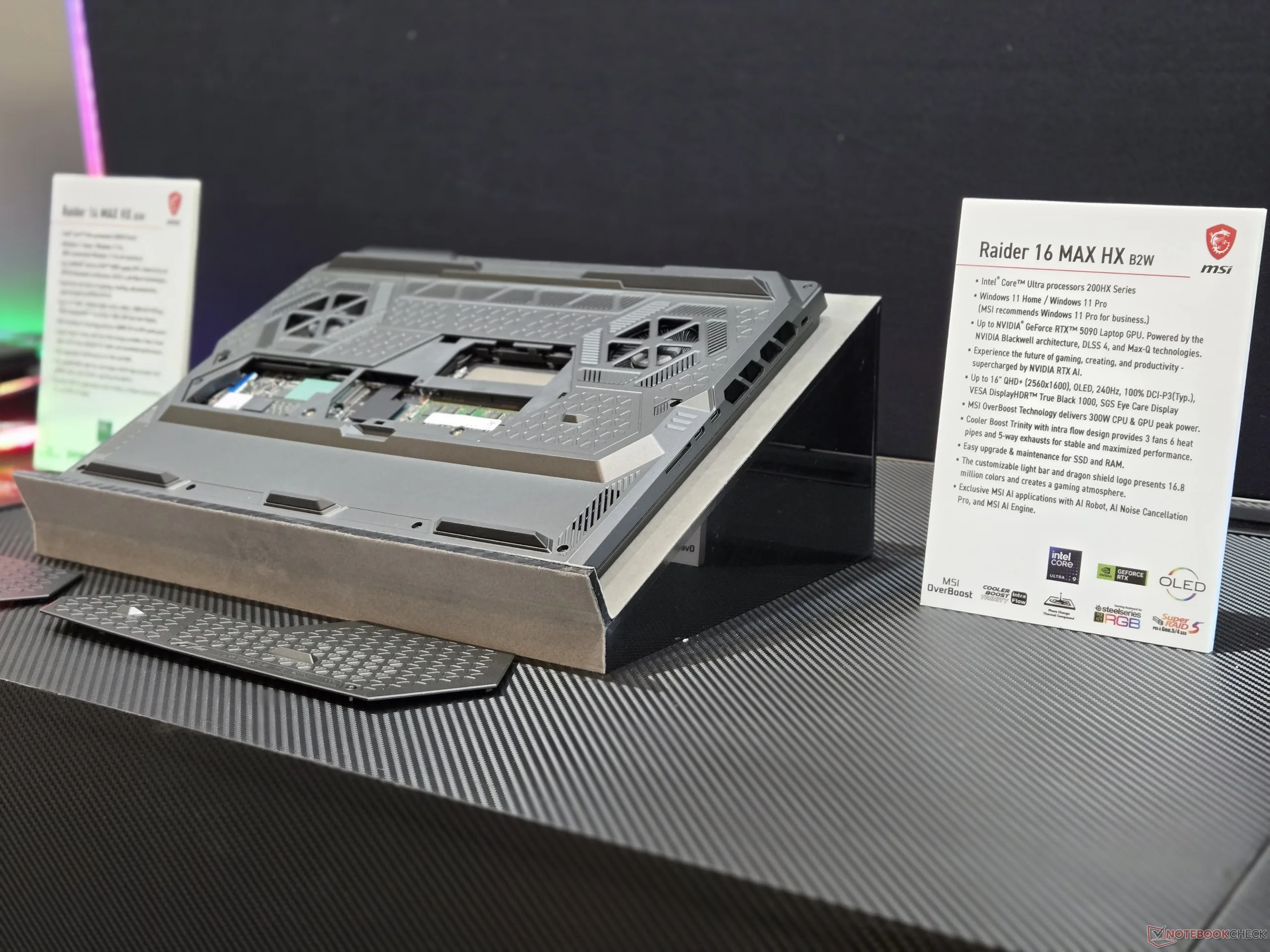 Avtäckt för bara några veckor sedan på CES 2026kommer den nya Raider 16 HX Max att köras på bekanta Intel Arrow Lake-HX-processorer och Nvidia Blackwell-hårdvara som 2025-modellen. Chassit har dock fått en ny design i år med en ny lucka på bottenpanelen för enklare åtkomst till uppgraderingsbara komponenter som visas på bilderna nedan. I det här fallet kommer ägare att kunna installera upp till två DDR5 SODIMM-moduler och två M.2 PCIe5 SSD-enheter utan att behöva öppna upp hela bottenpanelen.