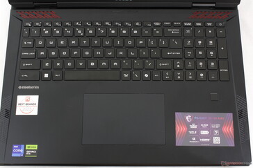 Den kanske mest anmärkningsvärda visuella skillnaden mellan Raider 18 HX och Titan 18 HX är det omdesignade tangentbordsdäcket. Medan Titan 18 HX har ett plattare däck med en snygg glaspanel som sträcker sig över handledsstöden och klickplattan, tar Raider ett mer traditionellt tillvägagångssätt utan glas och bara en grundläggande klickplatta.