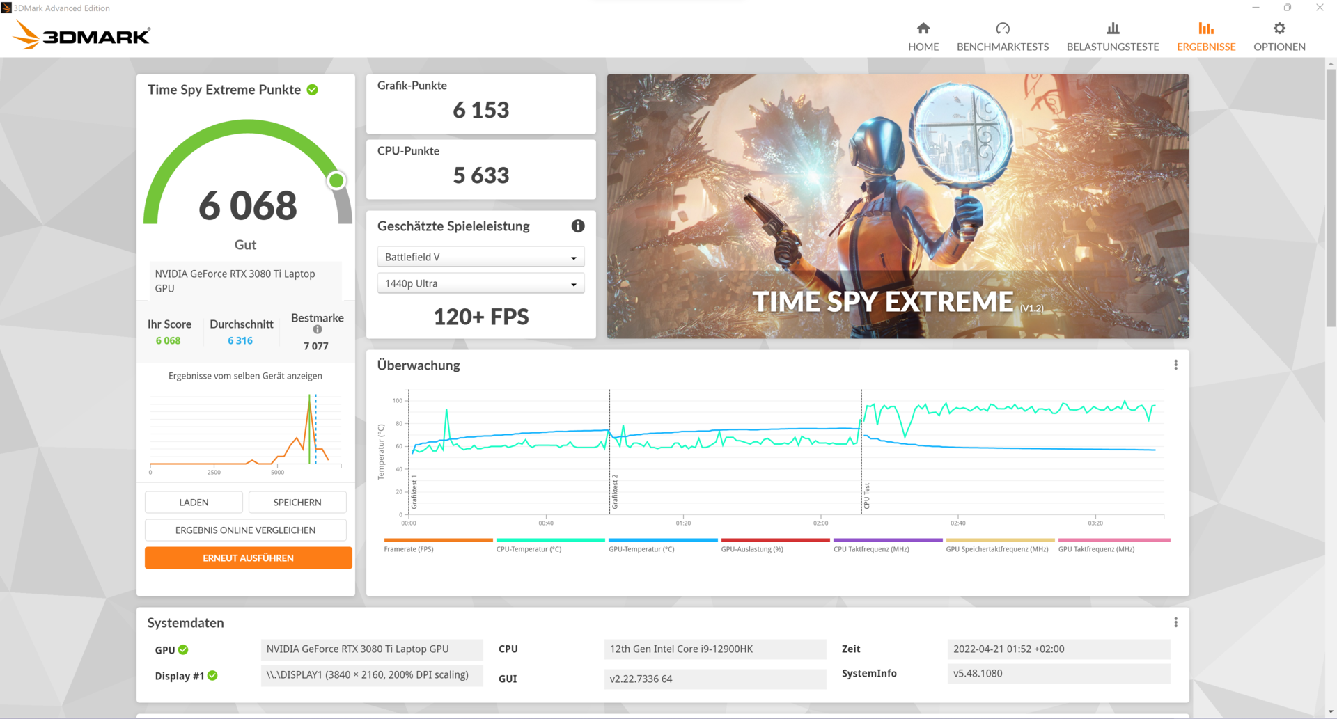 | 87.4 % v7 (old) | 06/2022 | MSI Raider GE66 12UHS i9-12900HK, GeForce RTX 3080 Ti Laptop GPU | 2.4 kg | 23.4 mm | 15.60" | 3840x2160 | |