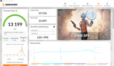 I testet på Witcher 3 kan systemet ladda upp högst 160 watt samtidigt. Detta är uppdelat på 122 watt GPU-kraft och 37 watt för CPU:n. Temperaturerna i detta scenario ligger i genomsnitt på 93 grader Celsius på CPU-sidan, med maximala värden på upp till 100 grader Celsius. För grafikkortet ser vi medeltemperaturer på 86 grader Celsius. CPU-klockan går inledningsvis på 4 800 MHz i P-kärnorna innan den lägger sig på 3 990 MHz. E-kärnorna körs kortvarigt på 3 800 MHz innan de sjunker till 3 100 MHz. Grafikkortets genomsnittliga klockfrekvens var 1 387 MHz.