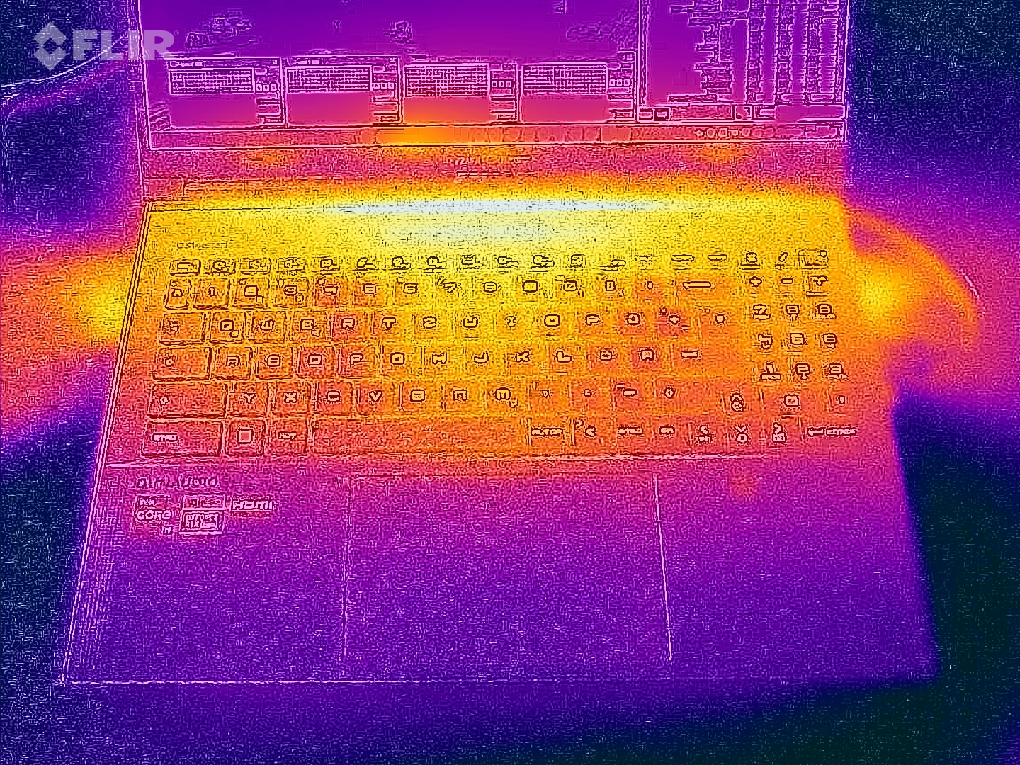 (-) Den maximala temperaturen på ovansidan är 49 °C / 120 F, jämfört med genomsnittet av 40.4 °C / 105 F , allt från 21.2 till 68.8 °C för klassen Gaming.