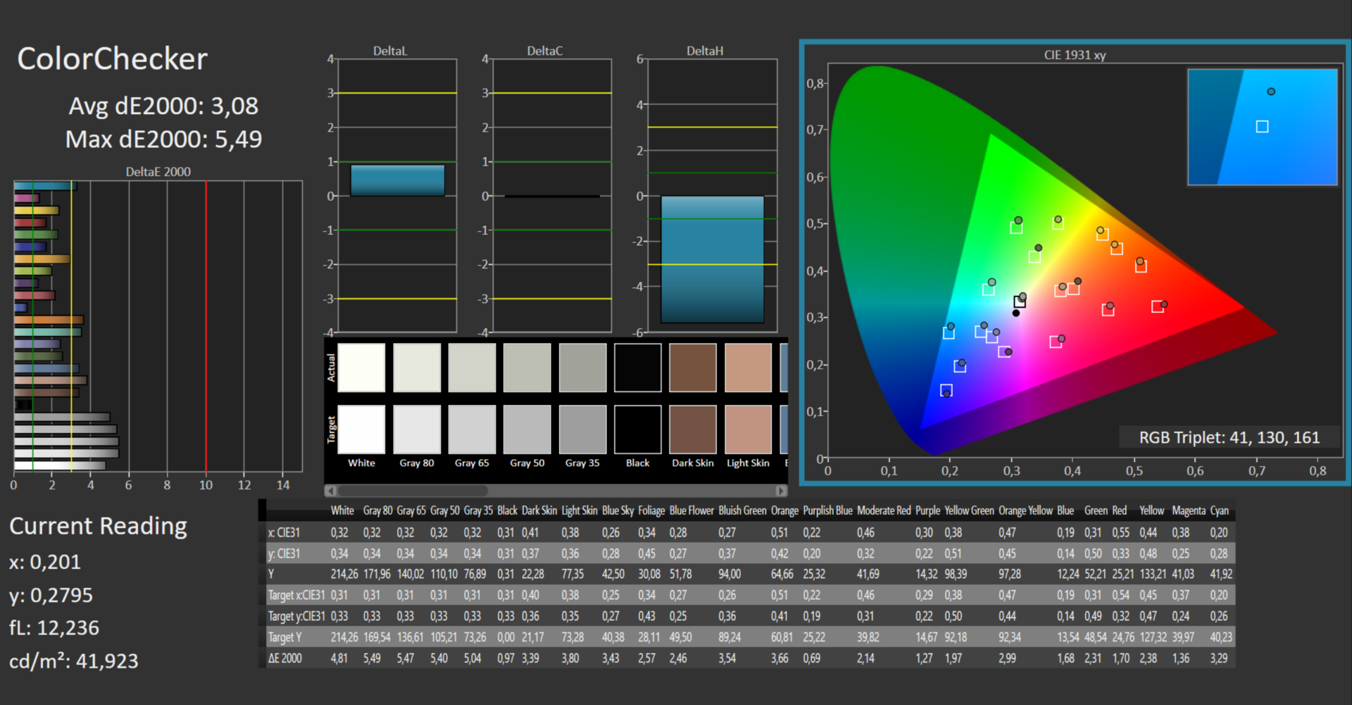 ΔE ColorChecker Calman: 3.08 | ∀{0.5-29.43 Ø4.78}