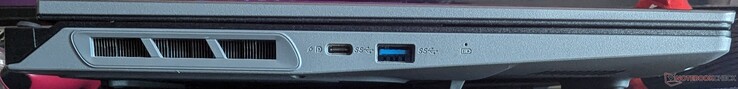 Bärbara speldatorer används ofta som stationära datorer och behöver gott om I/O för att uppfylla den rollen. Vi märkte dock några problem med portarna. Till att börja med kan du inte ladda din bärbara dator med USB Type-C-porten. Det tvingar dig att använda laddaren på baksidan, som är placerad precis bredvid ventilationsöppningarna.