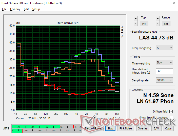 (+) | det totala ljudet är linjärt (4.6% skillnad mot median)