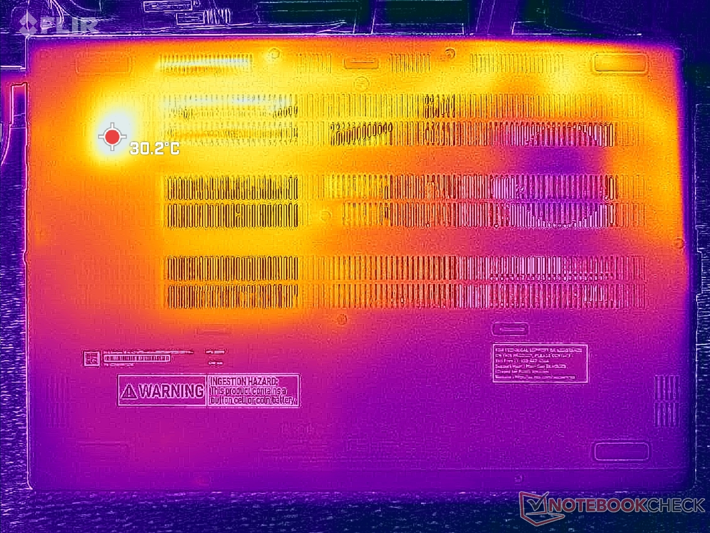 (+) Den maximala temperaturen på ovansidan är 35 °C / 95 F, jämfört med genomsnittet av 34.3 °C / 94 F , allt från 21.2 till 62.5 °C för klassen Office.