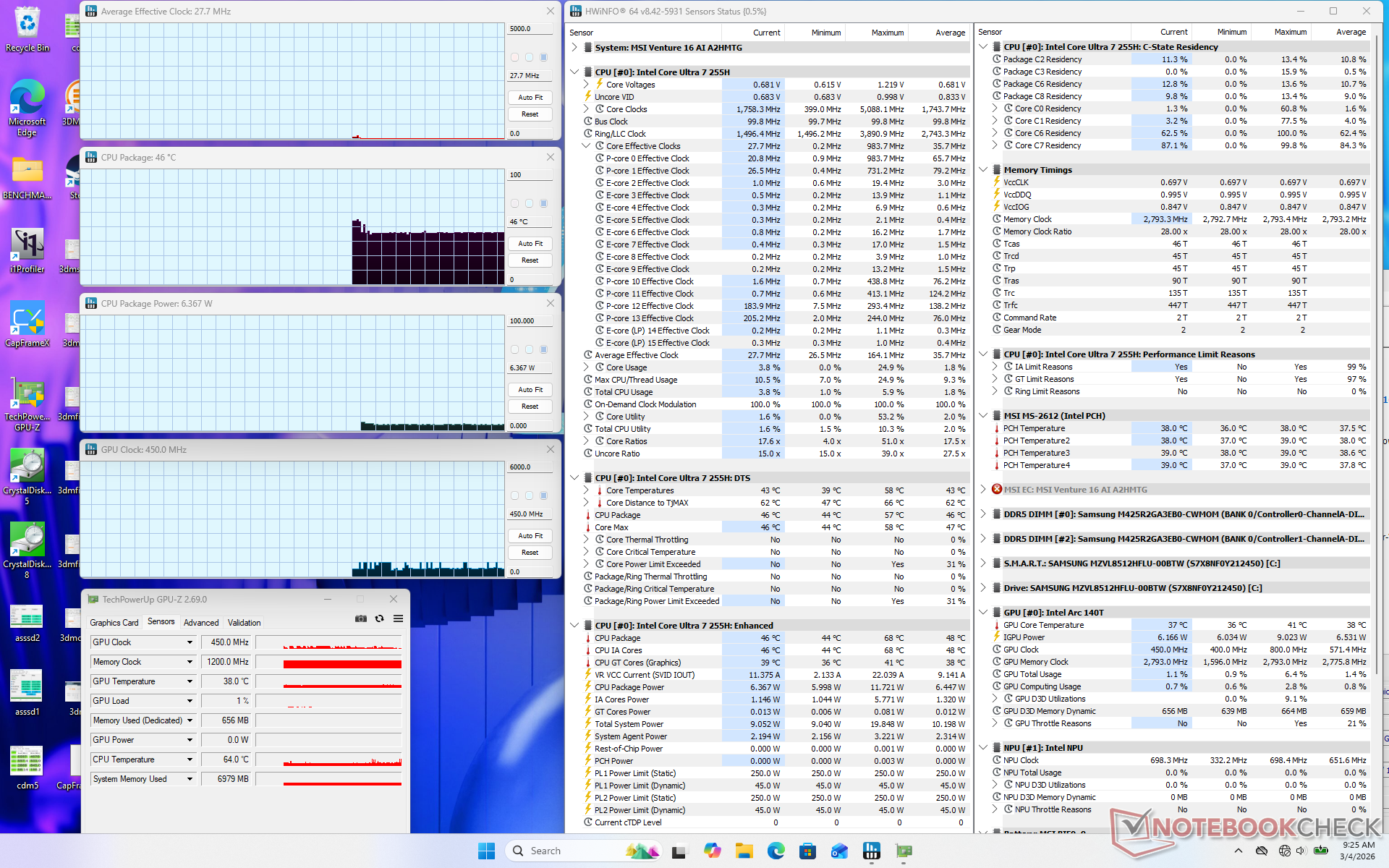 | Genomsnittlig CPU-klocka (GHz) | GPU-klocka (MHz) | Genomsnittlig CPU-temperatur (°C) | |
