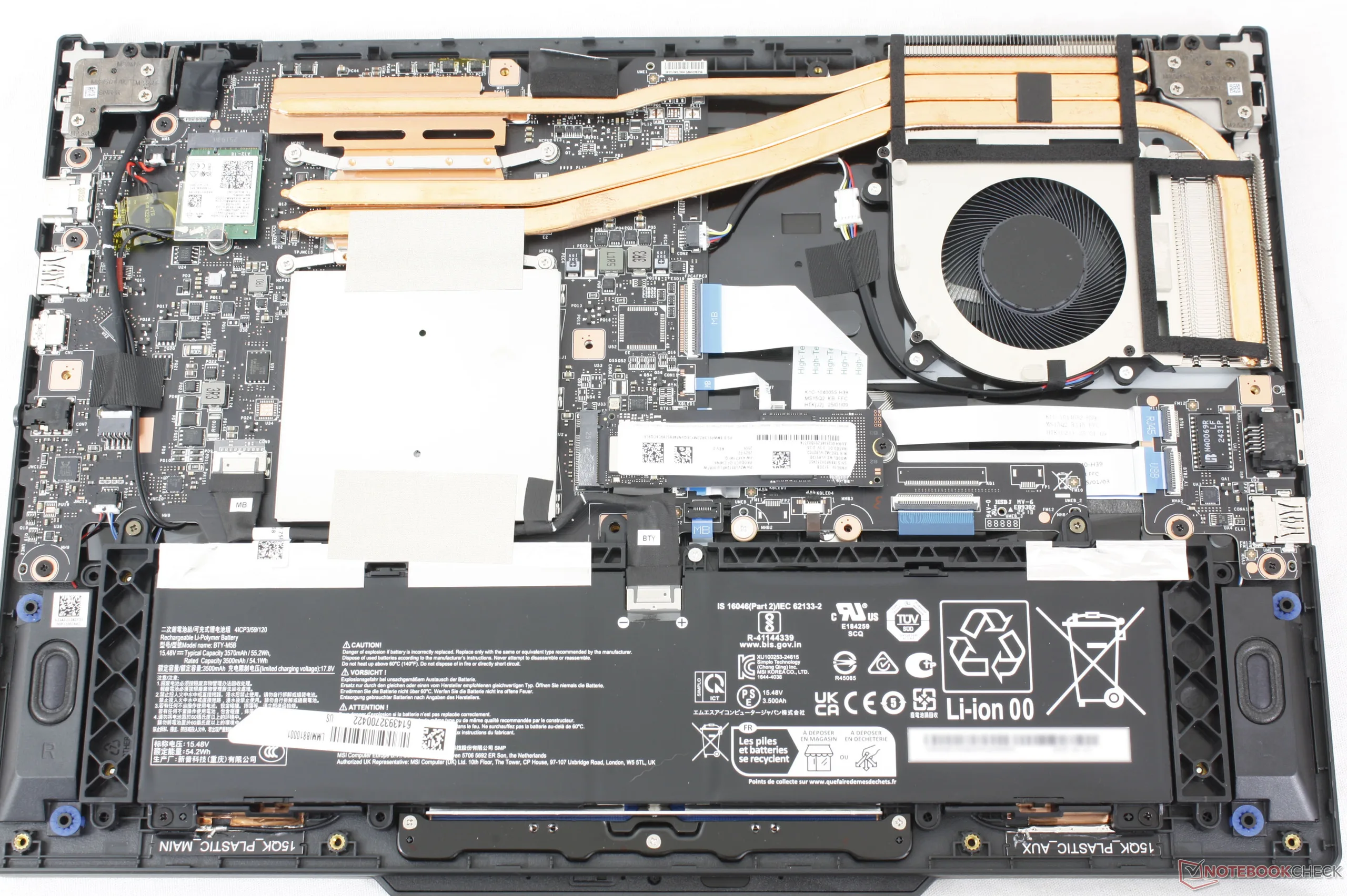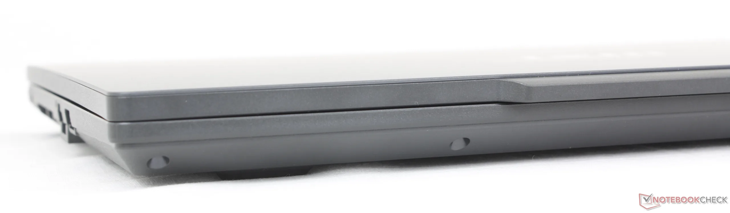 Chassit är till övervägande del tillverkat av slät, matt plast med god styvhet för att hålla kostnaderna nere. Intressant nog är systemet tyngre och tjockare än många andra 16-tums bärbara datorer, men med ett mindre fotavtryck tack vare de smalare ramarna.