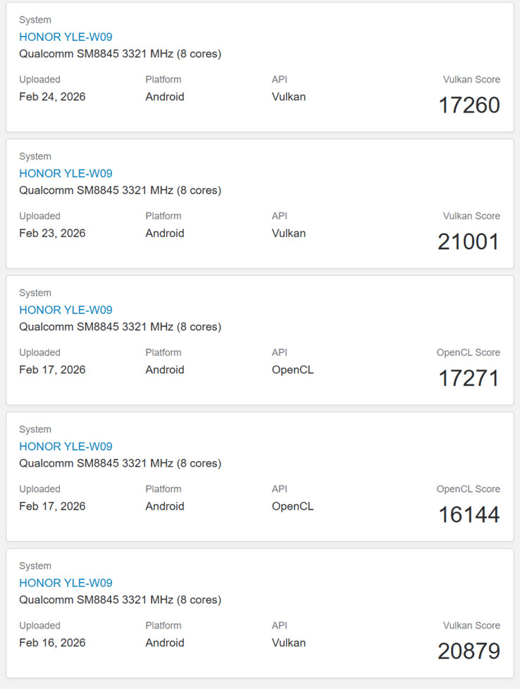 Prestandan som uppnås med den inbyggda Adreno 829 GPU:n når dock inte upp till förväntningarna. Även om det är ett begränsat dataset för tillfället, är alla OpenCL- och Vulkan-poäng som hittills uppnåtts i den nedre änden av vad vi har kommit att förvänta oss från avancerade chipset som Dimensity 9400+, Snapdragon 8 Elite eller Snapdragon 8 Elite Gen 5. Vänligen se vår tidigare artikel för mer information om MagicPad 4.