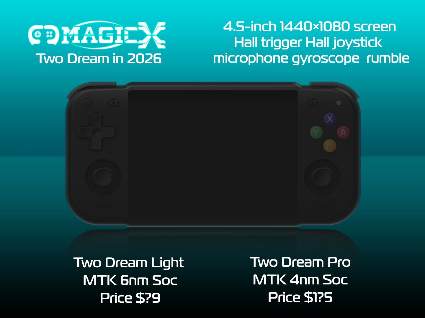 Nu har MagicX bekräftat den nära förestående ankomsten av två nya handdatorer. I detta skede är det oklart om företaget planerar att släppa En Retro 45, En flip 50 och Två DS 46 först. Medan vi väntar på mer information om de tre handdatorerna har MagicX presenterat inledande information om Two Dream Light och Two Dream Pro.