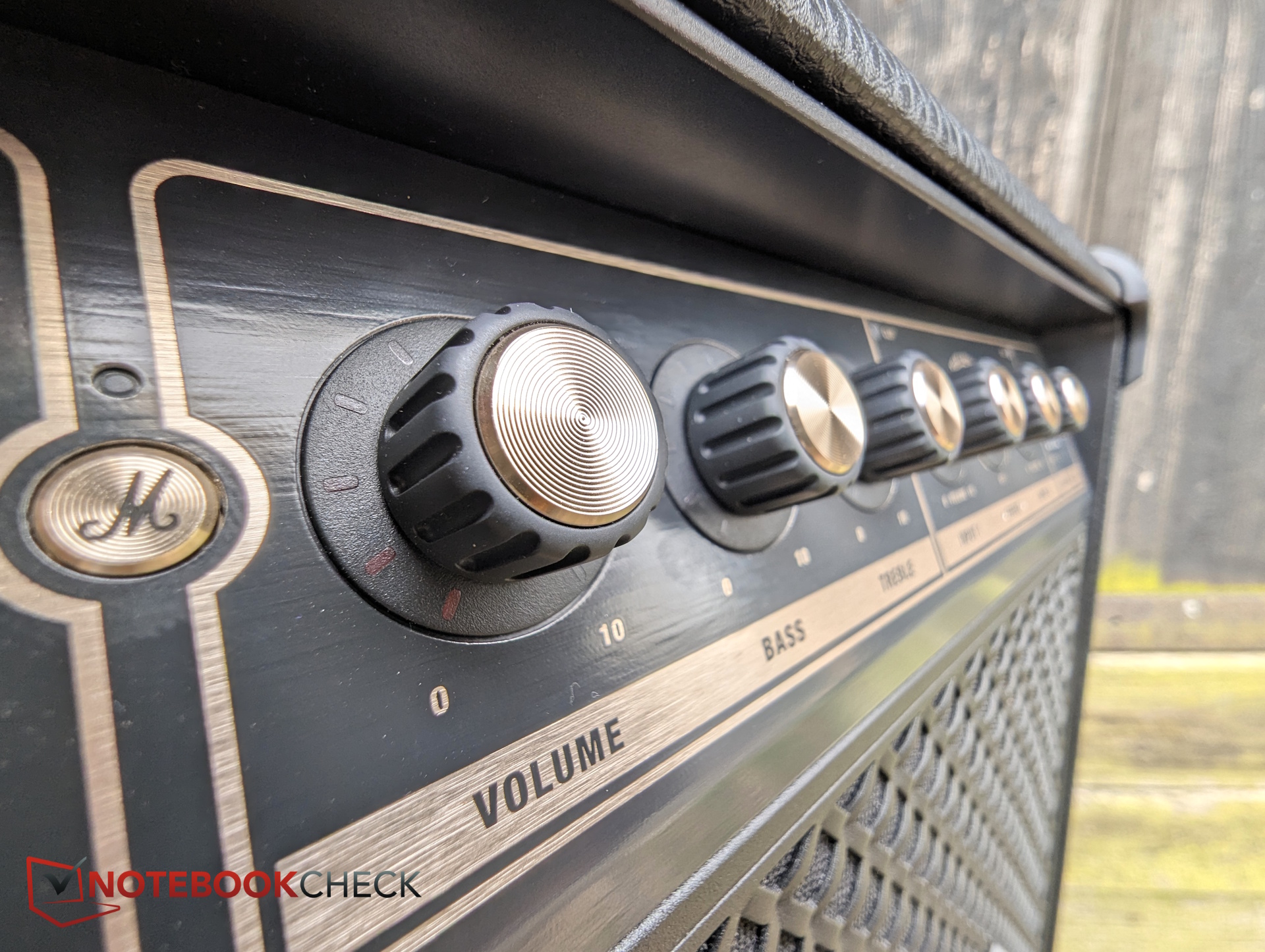 För att vara en Marshall-högtalare är basjusteringsområdet via ratten något begränsat. Vi kände sällan att vi behövde skruva ner den avsevärt, och i vissa spår ville vi faktiskt ha lite mer bas utan att offra diskanten - särskilt vid låga till medelhöga volymer. De höga tonerna, å andra sidan, förblir tydliga när de förstärks utan att bli hårda.