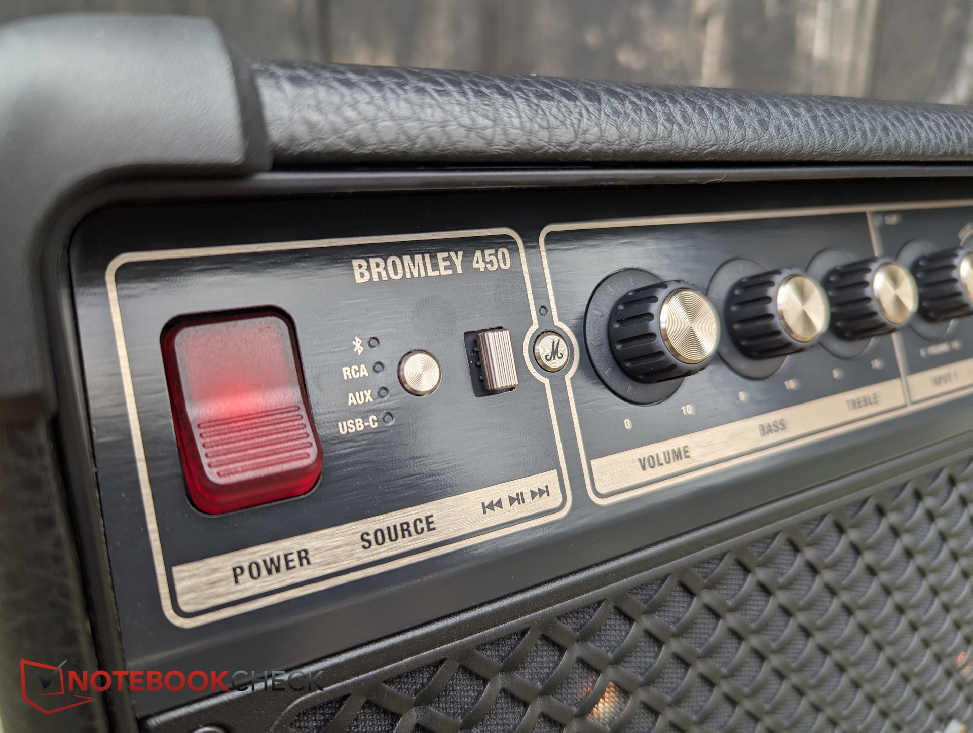 Den som är bekant med den större Bromley 750 kanske tar sig en funderare - 450 ser nästan identisk ut, bara nedskalad. Det betyder Marshall-typisk styling istället för generisk, flashig design. I praktiken innebär det att premium PU-läder täcker ytor som vanligtvis är av plast, ett distinkt metallgaller framtill och mässingsknappar och vridknappar längs toppanelen. Där finns också den anpassningsbara "M"-knappen, som kan tilldelas via appen.