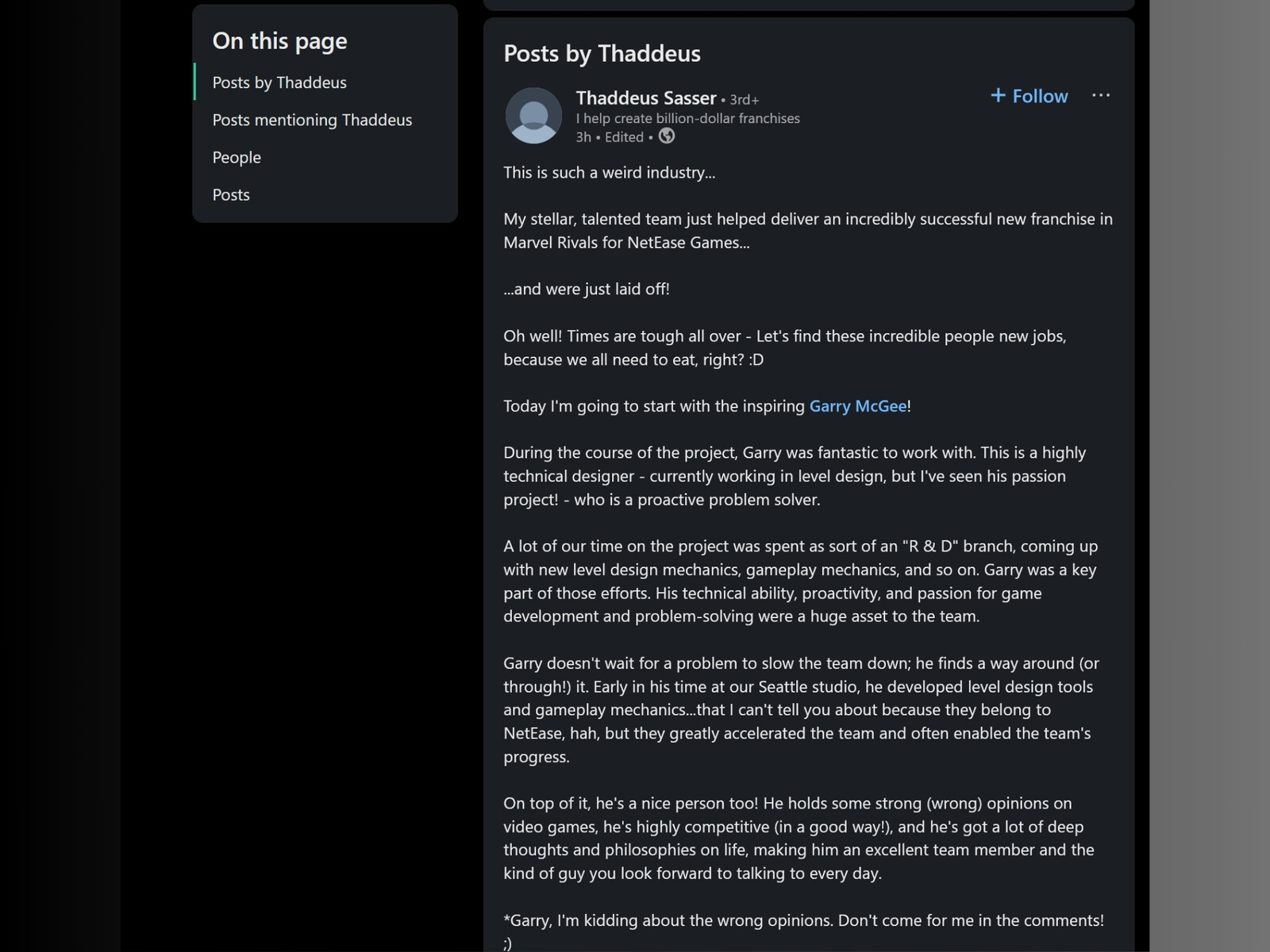 Marvel Rivals fans fick idag ännu en påminnelse om spelindustrins volatilitet. Trots att free-to-play-shootern har massiva spelarantal är medlemmar i NetEase Games utvecklingsteam arbetslösa. Nyheten kom ut när Game Director Thaddeus Sasser publicerade ett LinkedIn-meddelande där han uttryckte stöd för sina kollegor.