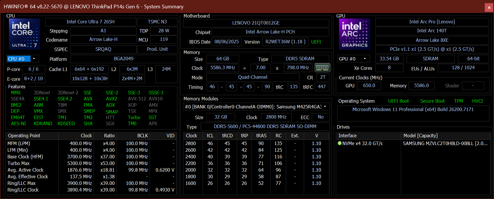 Specifikationer: Intel COre Ultra 7 265H med Nvidia RTX Pro 500 Blackwell Generation